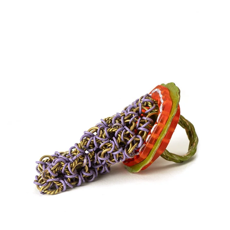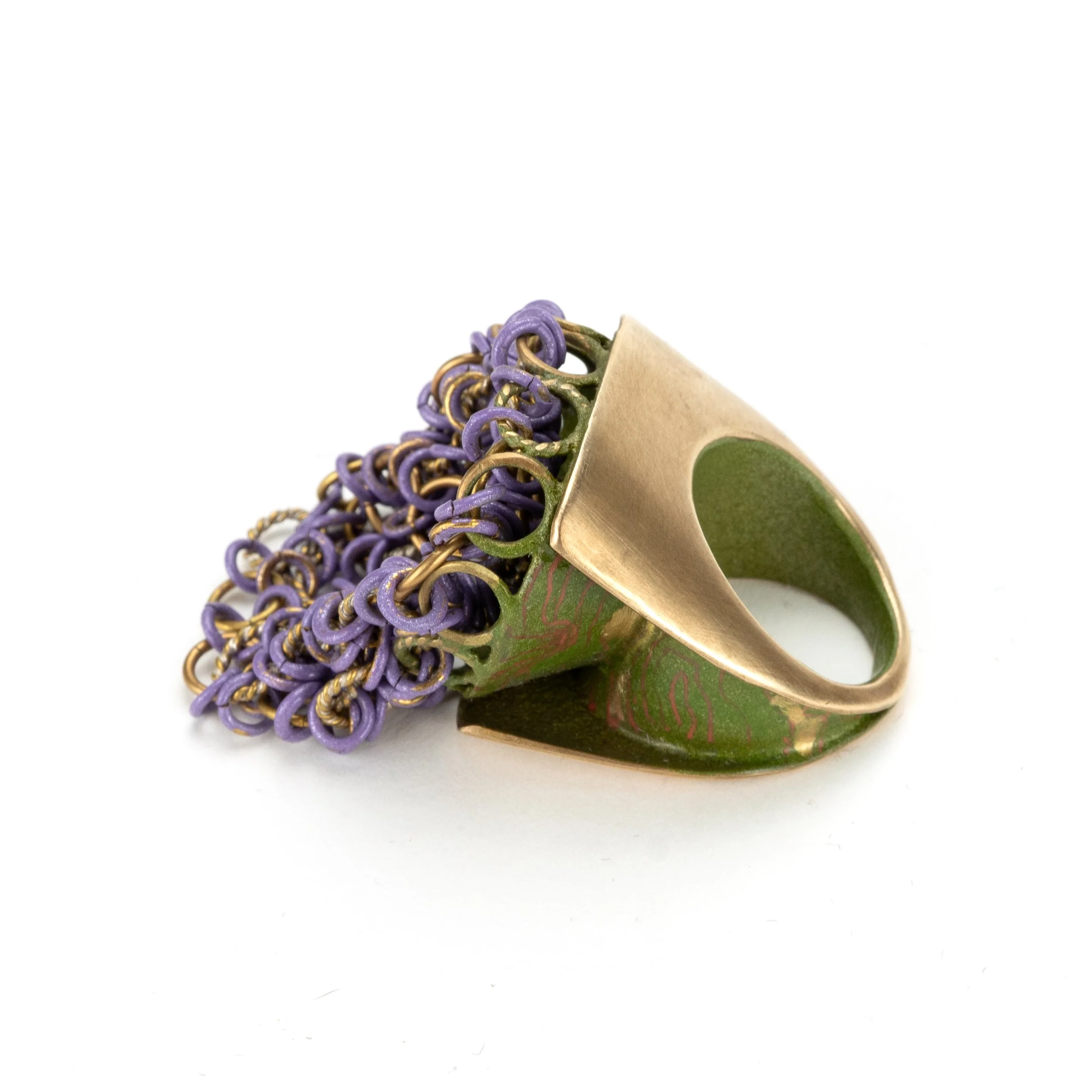 Chainmail Ring - Brass, acrylic, powder coat, thread